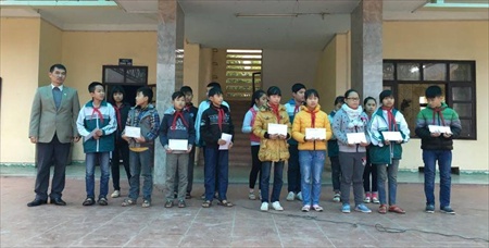Ban Chữ thập đỏ Trường THCS Xuân Sơn tổ chức tặng quà Tết Bính Thân cho học sinh khó khăn