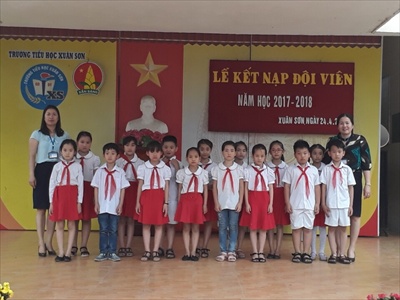 Thực hiện kế hoạch hoạt động của Liên đội trong năm học 2017-2018, Liên đội trường Tiểu học Xuân Sơn long trọng tổ chức lễ kết nạp Đội cho các em học sinh khối lớp 3, 4.