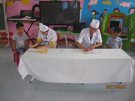 Trường MN Xuân Sơn tổ chức khám sức khỏe cho trẻ đợt 1 năm học 2017 – 2018.